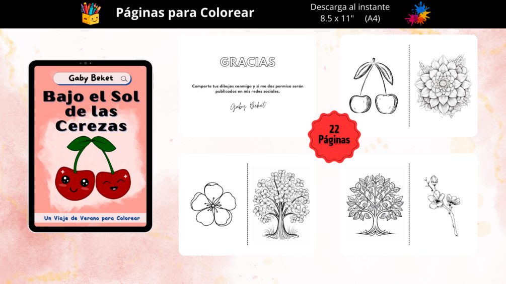 Libro para colorear: Bajo el Sol de las Cerezas Un Viaje de Verano para Colorear